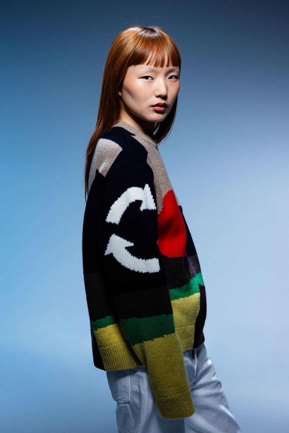 Walter Van Beirendonck koos zeven kleurcombinaties die samen het speelse, eigenzinnige DNA van de ontwerper belichamen. Omdat de truien uit restgaren bestaan, kan de tint van elke kleur variëren. Is een garen op, dan wordt het vervangen door een nieuwe tint binnen hetzelfde kleurenpalet, wat elke trui nog unieker maakt. Bij een online aankoop kan je één van de zeven kleurvarianten kiezen, maar de exacte tint blijft een verrassend detail tot je je trui in handen hebt. De collectie is uniseks en beschikbaar in maten 6–12 jaar en XS–XL.
